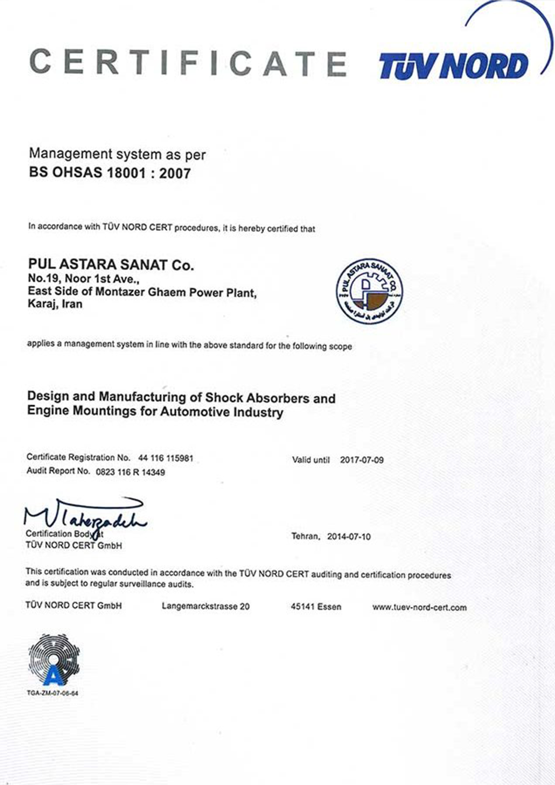 - اخذ استاندارد OHSAS 18001:2007 از شرکت NORD TÜV آلمان