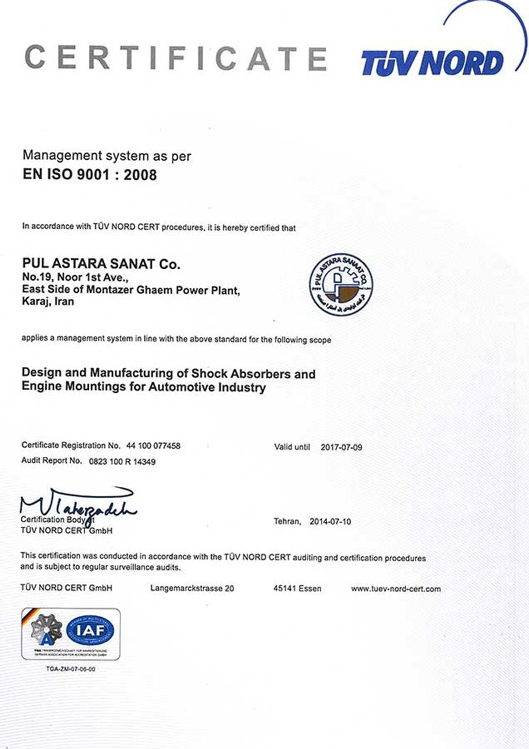 - اخذ استاندارد ISO 9001:2008 از شرکت NORD TÜV آلمان
