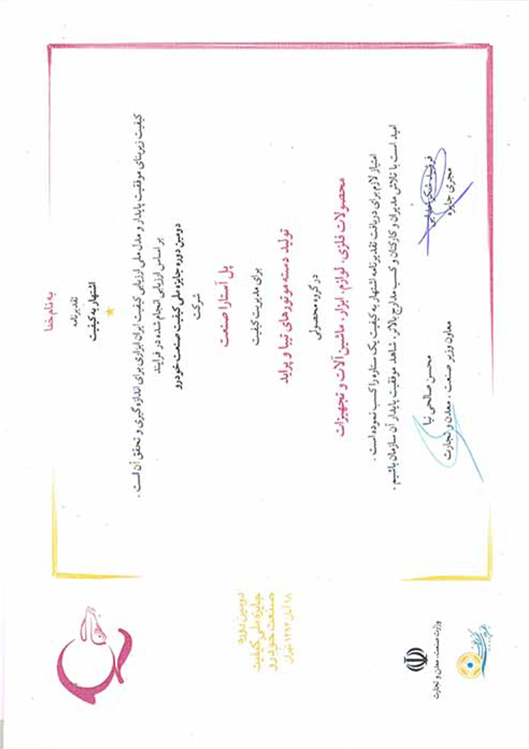 - اخذ گواهینامه اشتهار به کیفیت در صنعت خودرو از وزارت صنایع